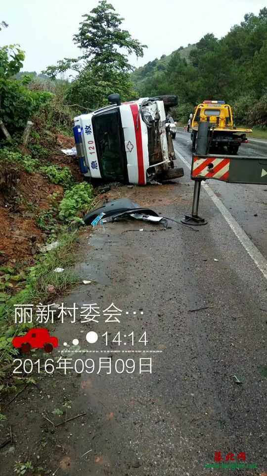 太平早收费站上去一点又发生一单,这个没有那么严重,suv冲出水沟,救护车刚来